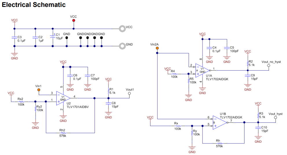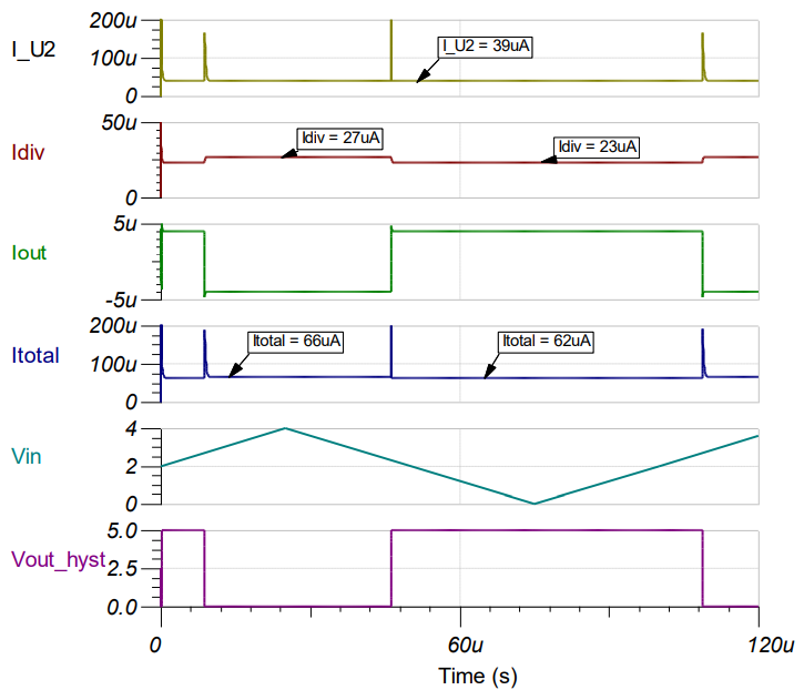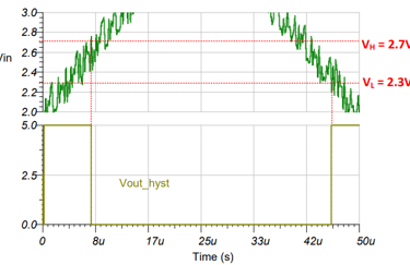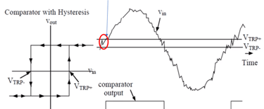 Output of a Comparator with Hysteresis: showing Single Transitions near Threshold: