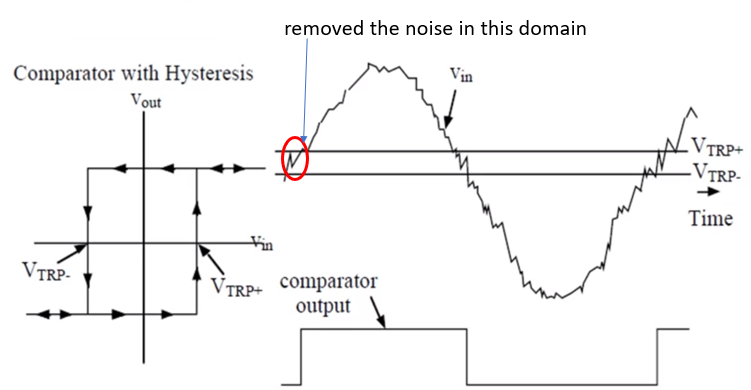 Comparator with hysteresis is useful in a noise environment. Comparator with hysteresis has higher power dissipation due to extra circuitry.