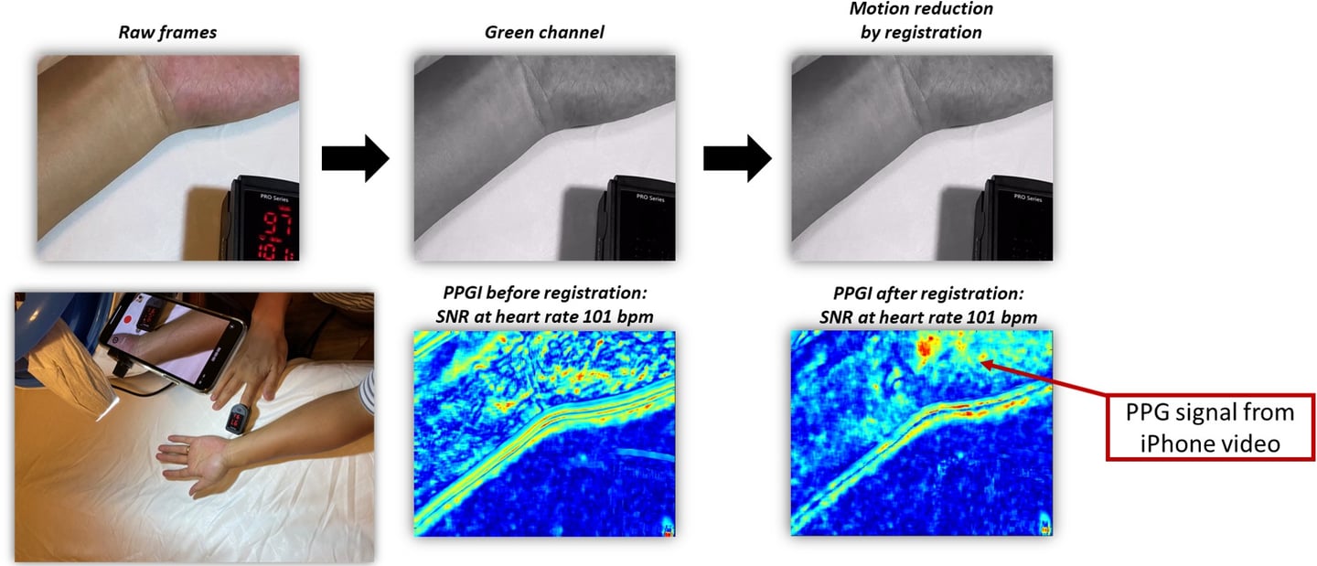 Science can be simple in our daily lives. Yes, you can visualize your blood flow and measure your heart rate simply non-contact through a mobile video. It is based on photoplethysmogram (PPG) imaging: in this demo, it is also implemented with a robust motion reduction method that significantly improves the signal-to-noise ratio. Check out more with our team if you have interest on similar topics.
