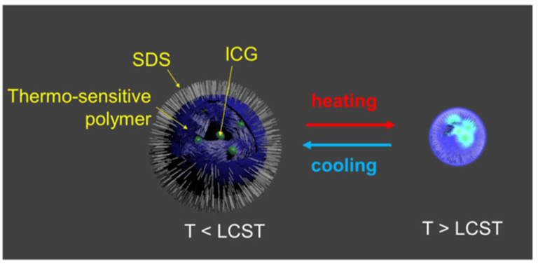 Temperature-switchable near-infrared fluorescence nano-capsules.