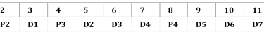 P2 = XOR of bits(3, 6, 7, 10, 11)