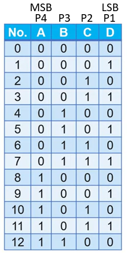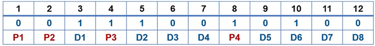 P3=XOR of bits ( 5, 6, 7, 12) = 1